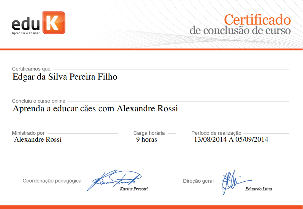 Tenho me especializado através de cursos, seminários, workshops e palestras, com o compromisso de aprimorar diariamente a qualidade dos serviços prestados aos clientes. Minha proposta é fomentar o treinamento de cães de maneira consciente, educando sobre os métodos mais eficientes de adestramento, manejo e relação com os cães.